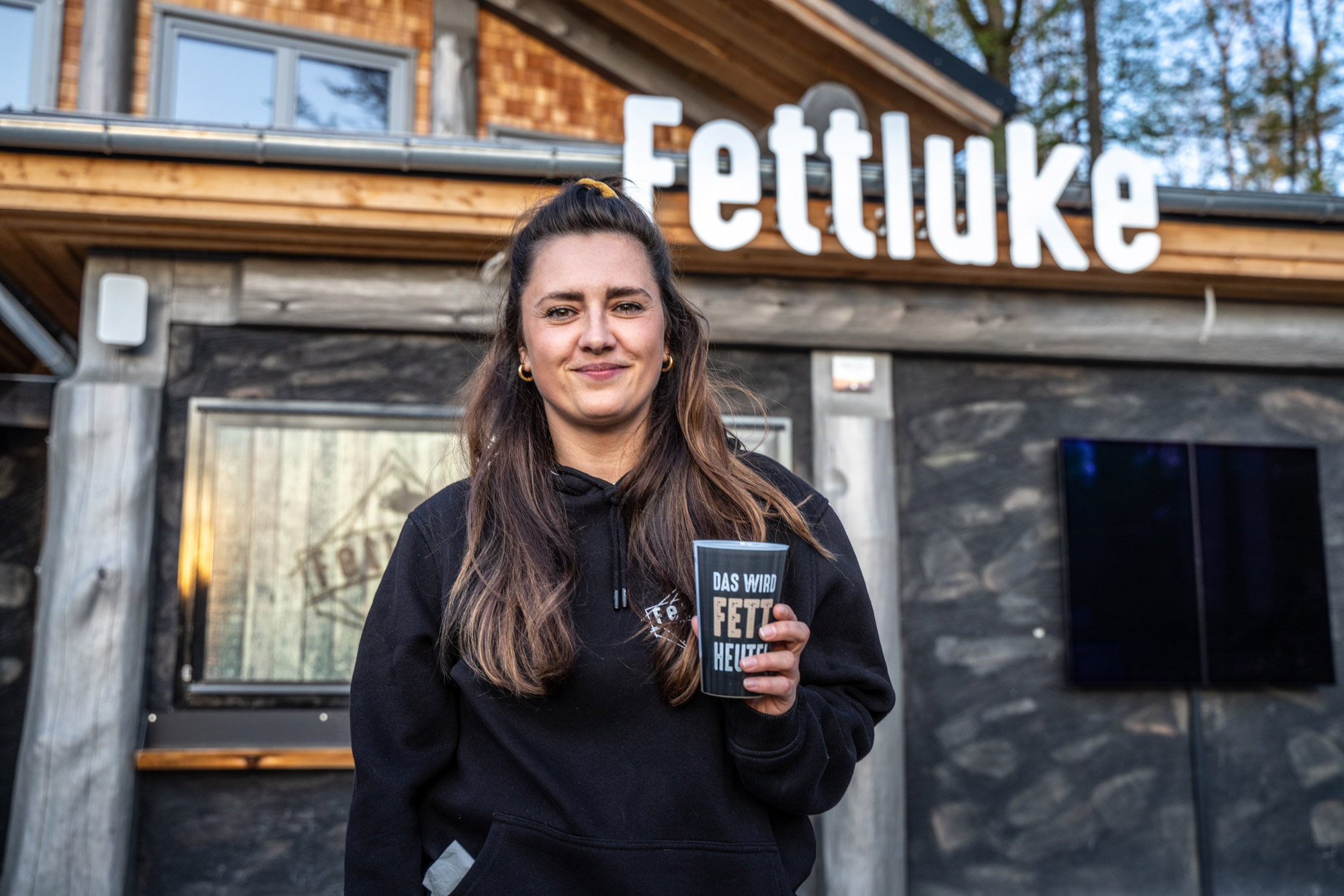 Hinter den Kulissen ist Marias Reich. Hier werkelt die Marketingspezialistin, damit du ein fettes Erlebnis genießen kannst. Als Mountainbikerin und Naturliebhaberin muss sie aber auch von Zeit zu Zeit mal raus und freut sich über ein bisschen Abwechslung mitten im Herz der Fettluke: der Küche.